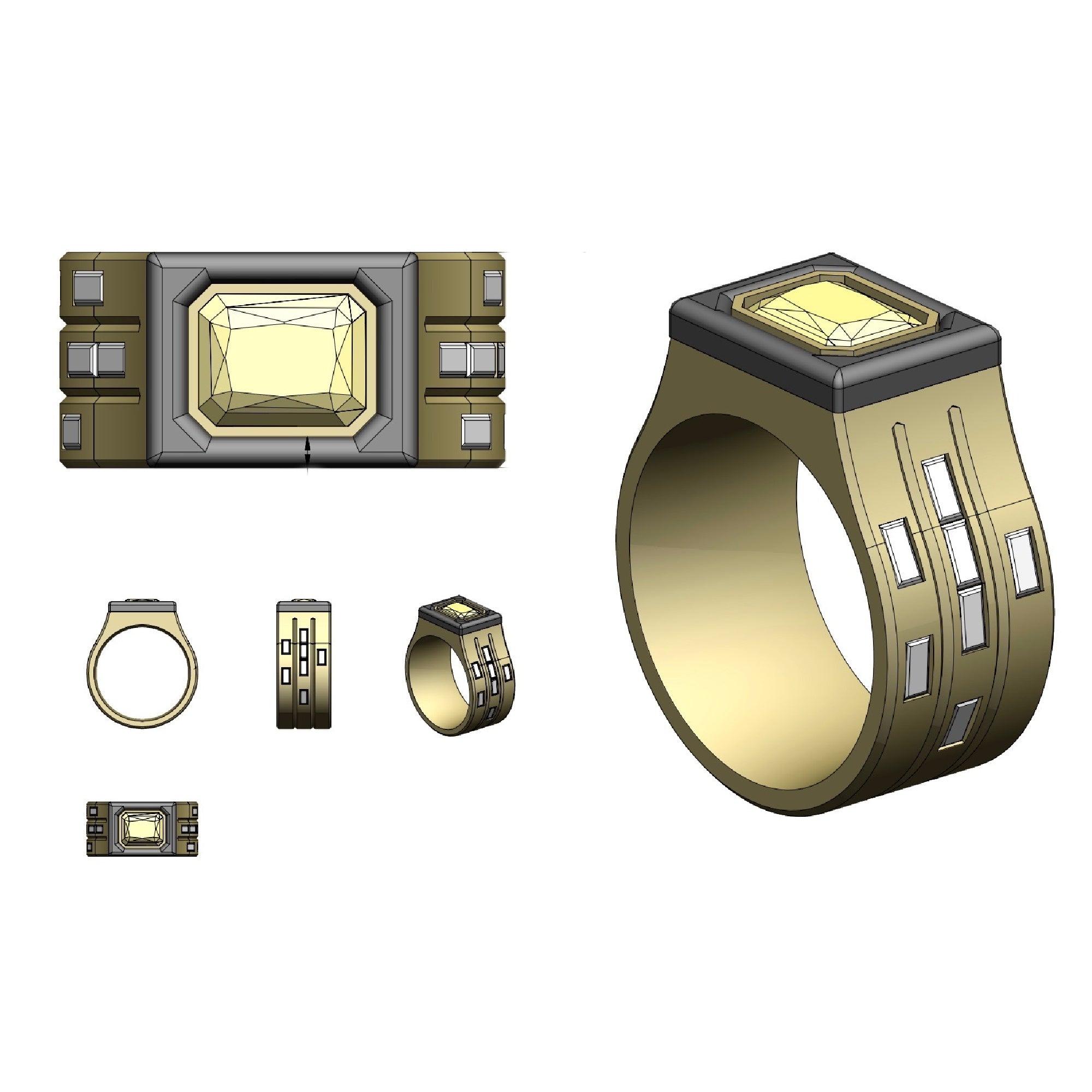 We combined our Shield east west emerald cut engagement ring with scattered baguette design details from the Energy Band design. There were so many design details to choose from - the center stone could have been set traditionally, the band could have been wider or thinner, and the onyx could have been replaced with gold. Deciding on the final design was a bit like putting together a puzzle with each piece combining to create the ring of our client's dreams. The design that she chose is so special and creates an instant heirloom.