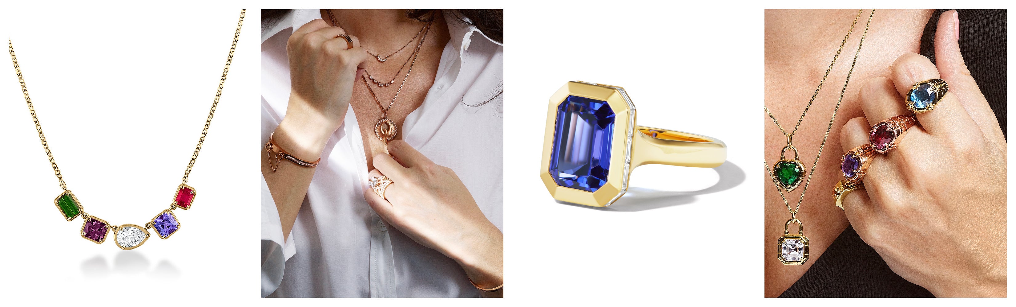 For a colorful Mother's Day jewelry gift, choose a gemstone piece that will make a daily statement. Our Endless Loop and Shield rings are modern settings that make for instant conversation pieces. For something with a subtle sentiment, we can design a custom birthstone necklace using gems or diamonds to represent your family. We also always advocate to override your birthstone and just choose your favorite gemstones.