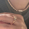 The newest Reverberations necklace is a stunning combination of gold and pavé diamond beads with a baguette and pavé diamond vial clasp. Designed to fluidly move with the wearer for a satisfying feel on the neck. A true investment piece with 12.5 carats of diamond and 3.5 ounces of gold.