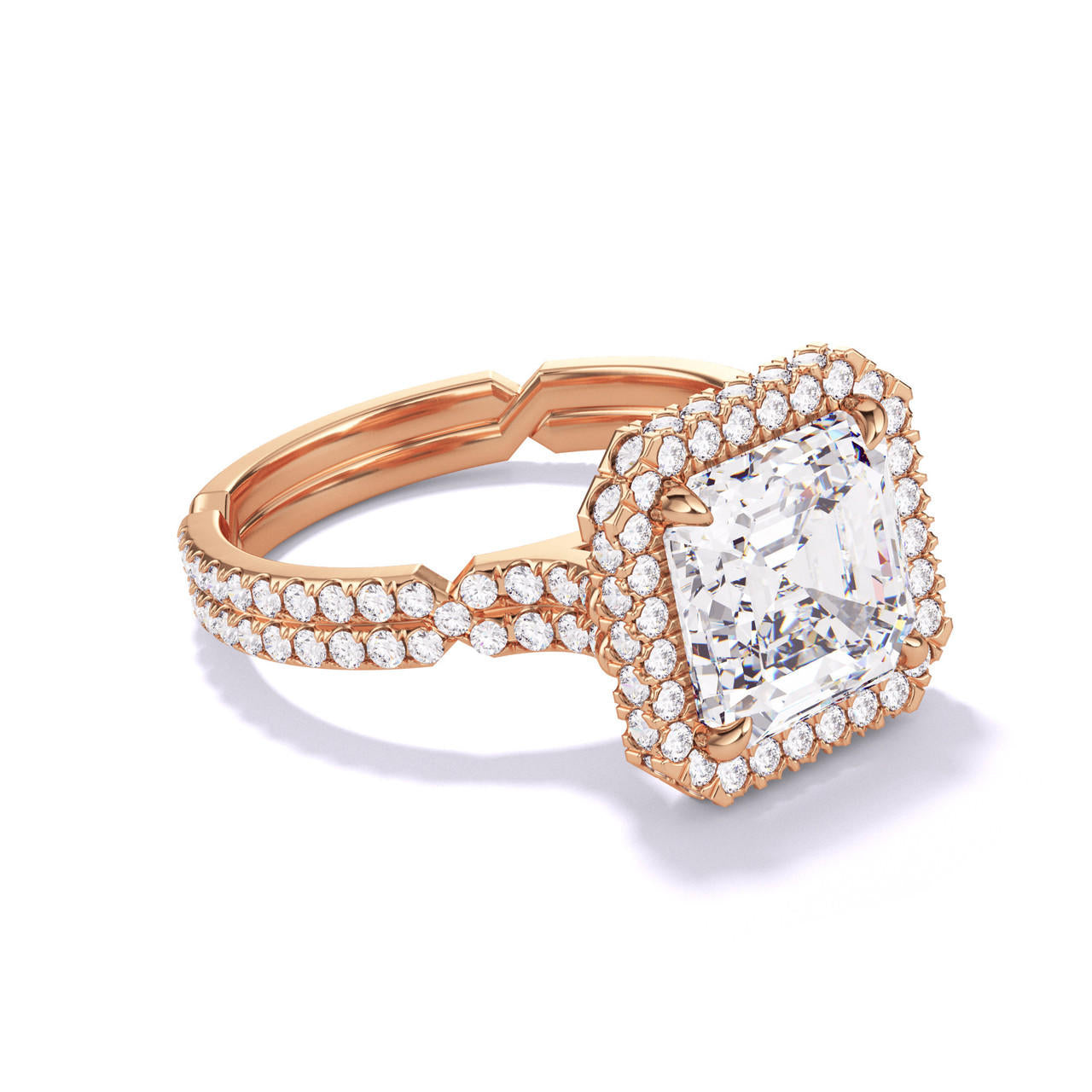 ASSCHER CUT DIAMOND ENGAGEMENT RING WITH A WRAPPED HALO CHANCE PAVE SETTING IN 18K ROSE GOLD