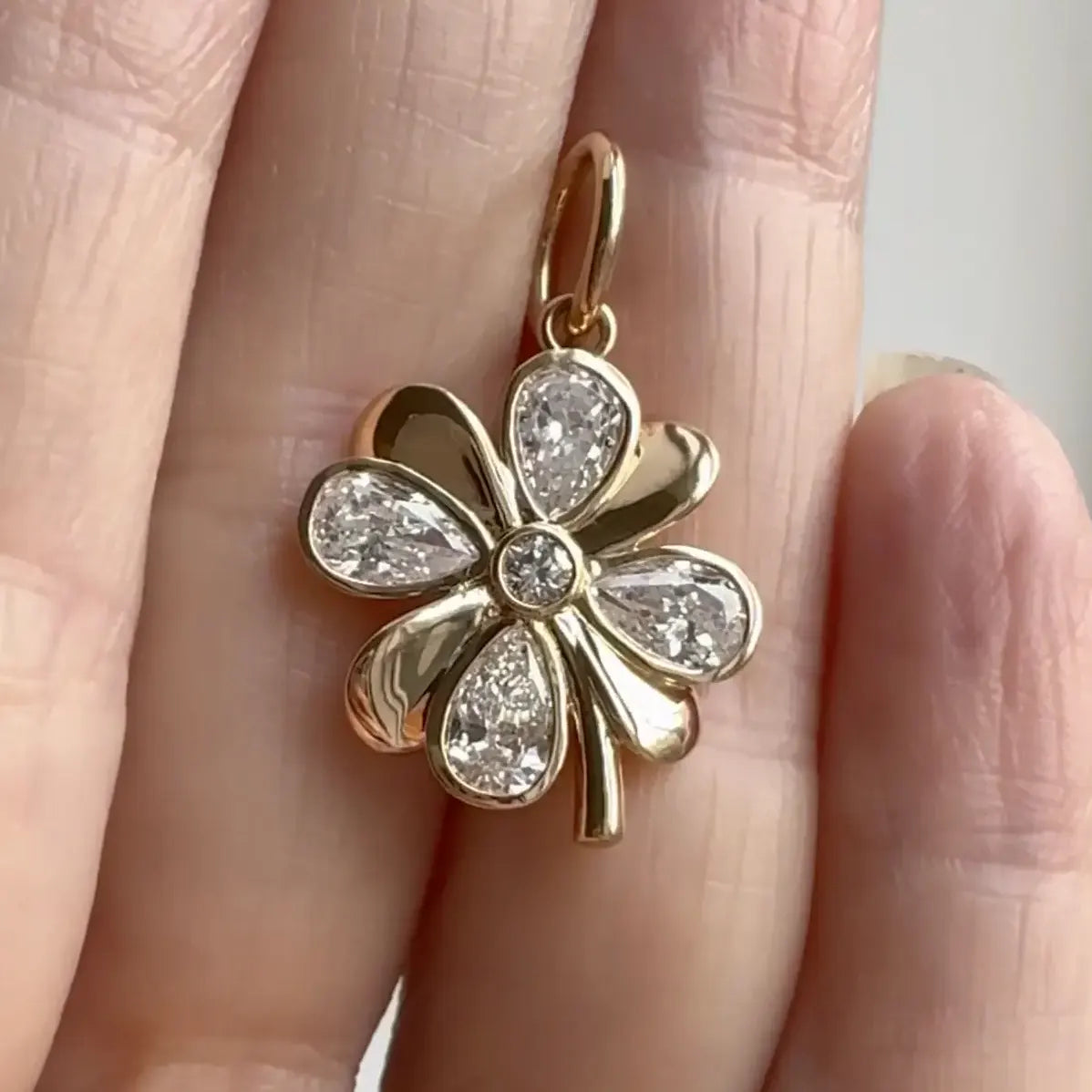Before and after: a delicate ring with pear shaped diamonds is transformed into a custom clover pendant necklace set in 18k rose gold. Our client wanted to reinvent her sweet ring into a piece that she would be able to wear more often. We used her original diamonds and added leaves of gold to create the look of a blossoming clover - a beautiful reset just in time for St. Patrick's Day.