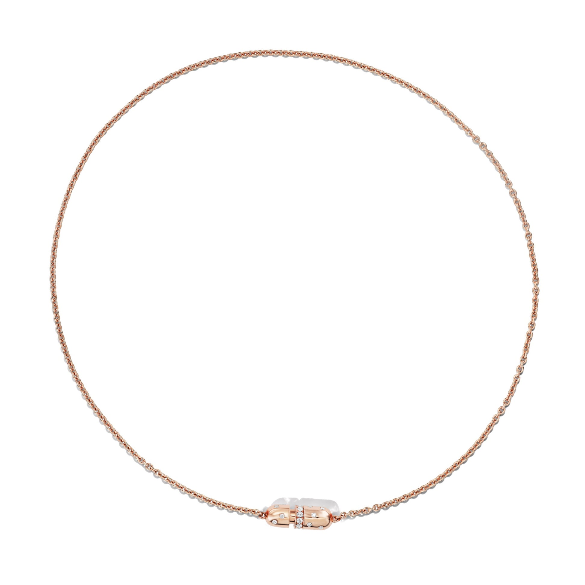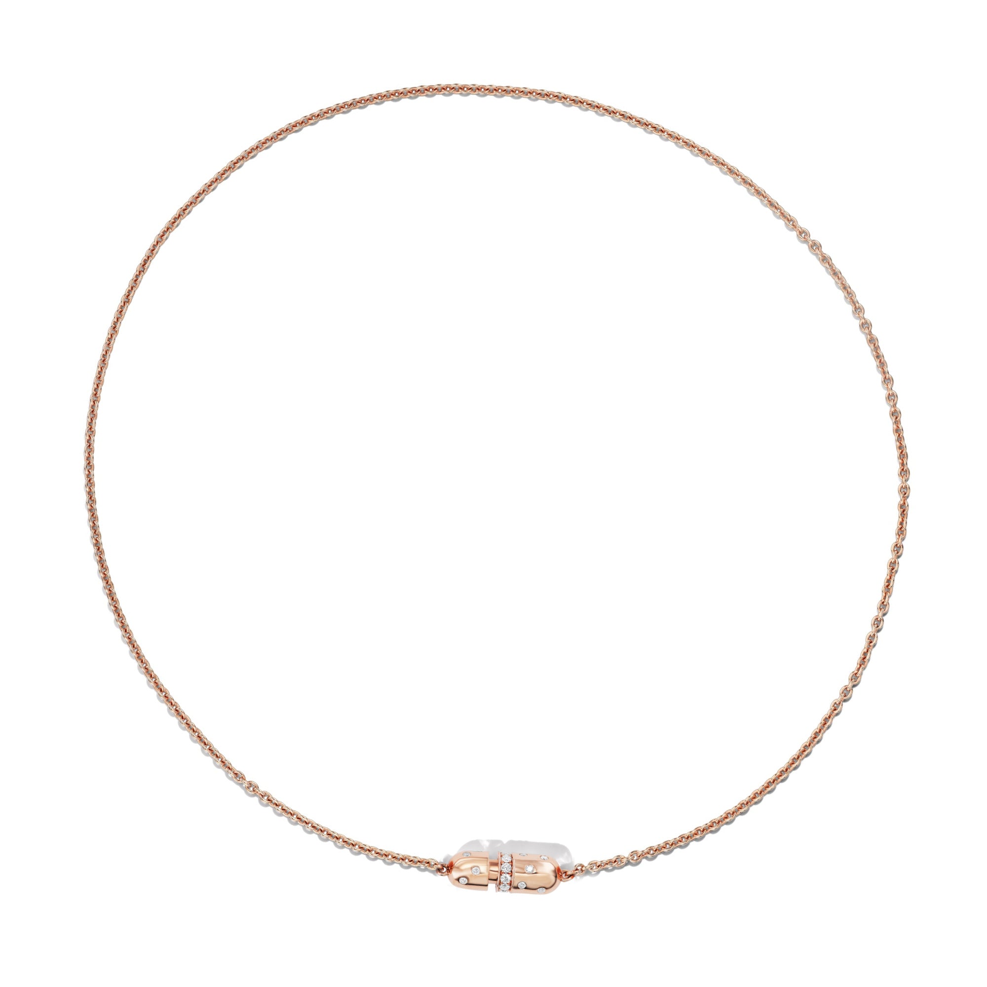 The Vices & Reverberations collection is a playful pairing of gemstones and elegant clasps that represent guilty pleasures, giving wearers and admirers an unexpected delight. This playful style features a burnished diamond capsule clasp. The perfect cheeky piece to add to your daily necklace assortment. The capsule doubles as a clasp and is 7mm.
