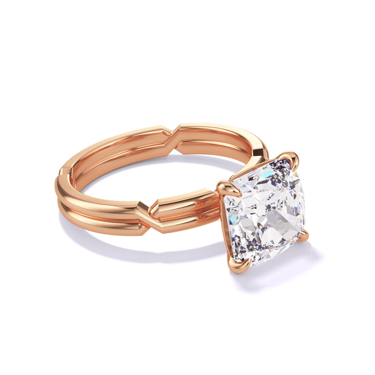 All Lindsey Scoggins Studio engagement rings are made exclusively for you in New York City’s Diamond District. Your cushion cut diamond engagement ring with a classic four prong setting on a polished Chance collection band in rose gold will be made to precisely fit your diamond and finger. Due to the custom nature of all of our jewelry, please allow three to six weeks for delivery of this engagement ring depending on the time of year and complexity of your design.