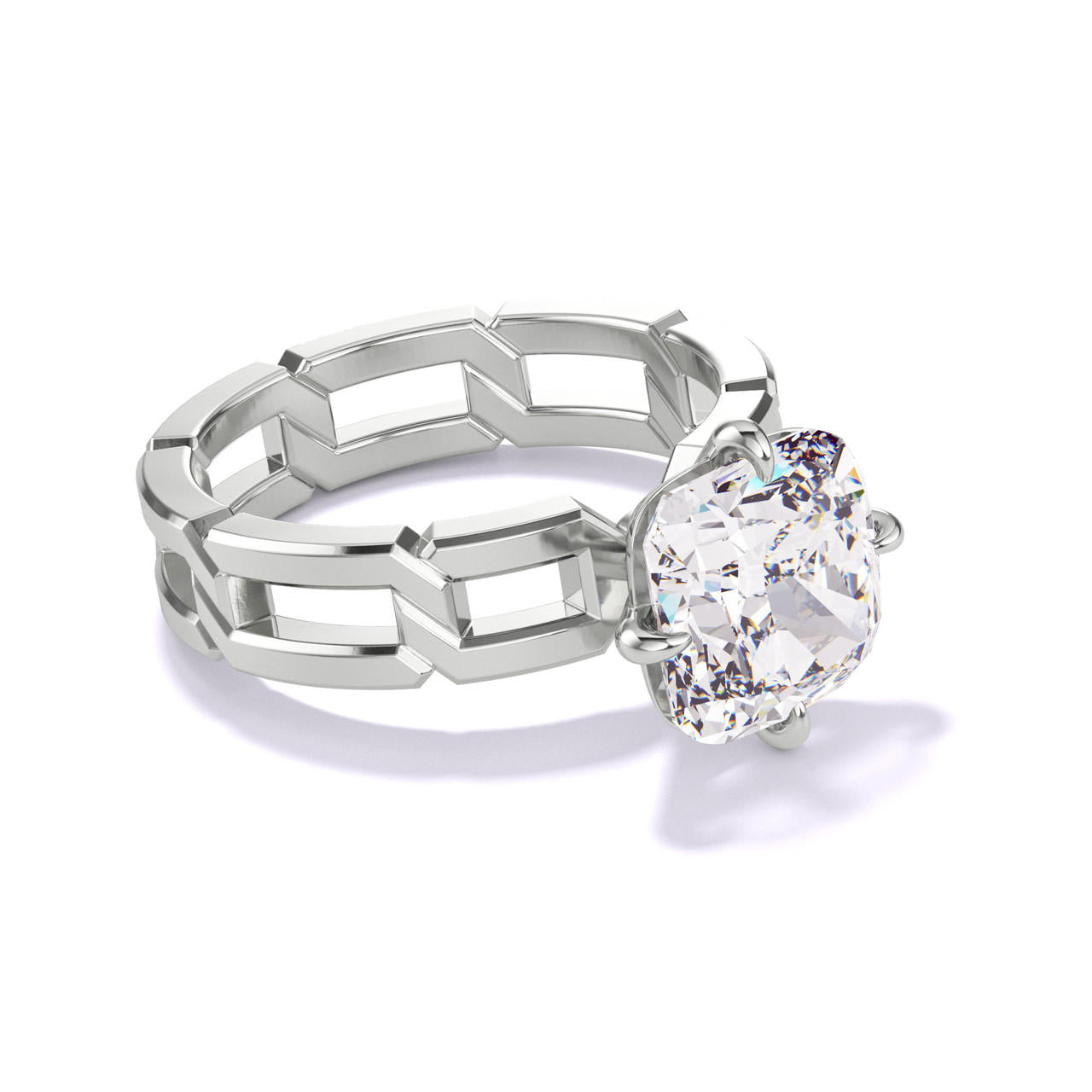 CUSHION CUT DIAMOND ENGAGEMENT RING WITH A COMPASS 4 PRONG 8 LINKS SETTING IN PLATINUM
