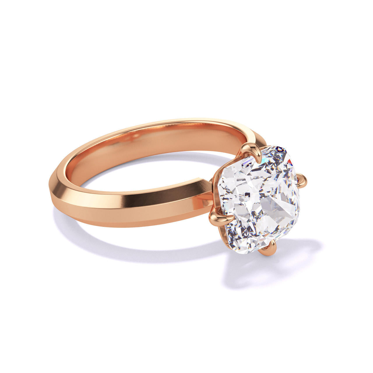 CUSHION CUT DIAMOND ENGAGEMENT RING WITH A COMPASS 4 PRONG THREE PHASES SETTING IN 18K ROSE GOLD