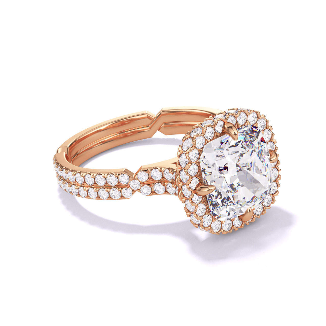 CUSHION CUT DIAMOND ENGAGEMENT RING WITH A WRAPPED HALO CHANCE PAVE SETTING IN 18K ROSE GOLD