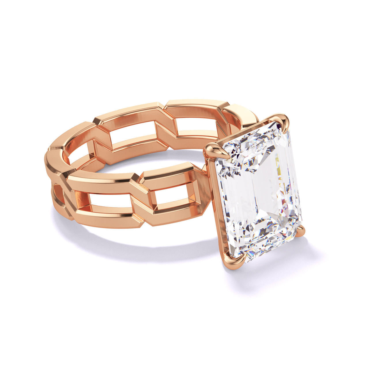 EMERALD CUT DIAMOND ENGAGEMENT RING WITH A CLASSIC 4 PRONG 8 LINKS SETTING IN 18K ROSE GOLD