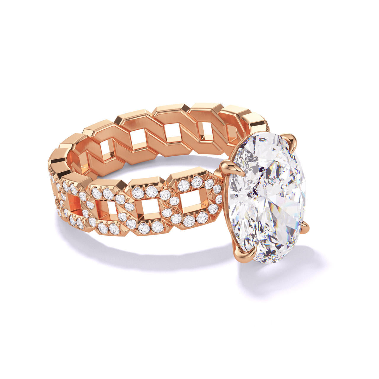 OVAL CUT DIAMOND ENGAGEMENT RING WITH A CLASSIC 4 PRONG 16 PAVE LINKS SETTING IN 18K ROSE GOLD