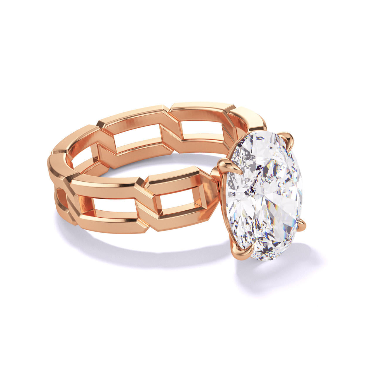 OVAL CUT DIAMOND ENGAGEMENT RING WITH A CLASSIC 4 PRONG 8 LINKS SETTING IN 18K ROSE GOLD