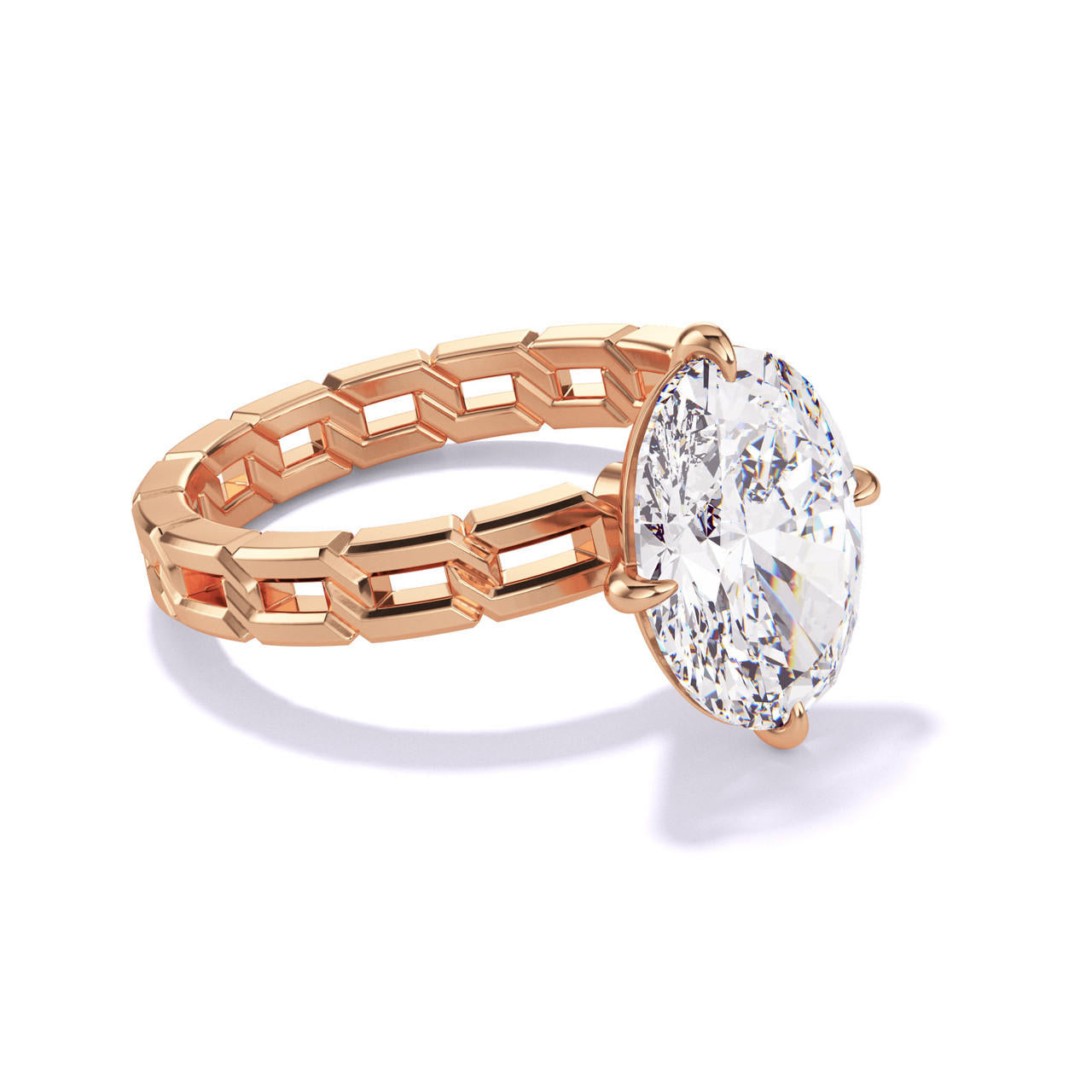 OVAL CUT DIAMOND ENGAGEMENT RING WITH A COMPASS 4 PRONG 16 LINKS SETTING IN 18K ROSE GOLD