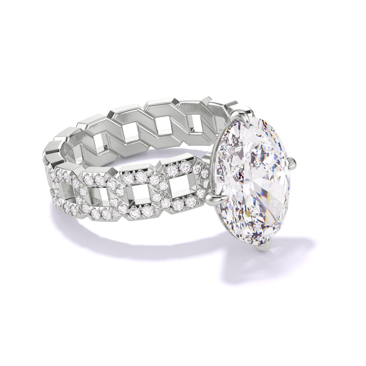 OVAL CUT DIAMOND ENGAGEMENT RING WITH A COMPASS 4 PRONG 16 PAVE LINKS SETTING IN PLATINUM
