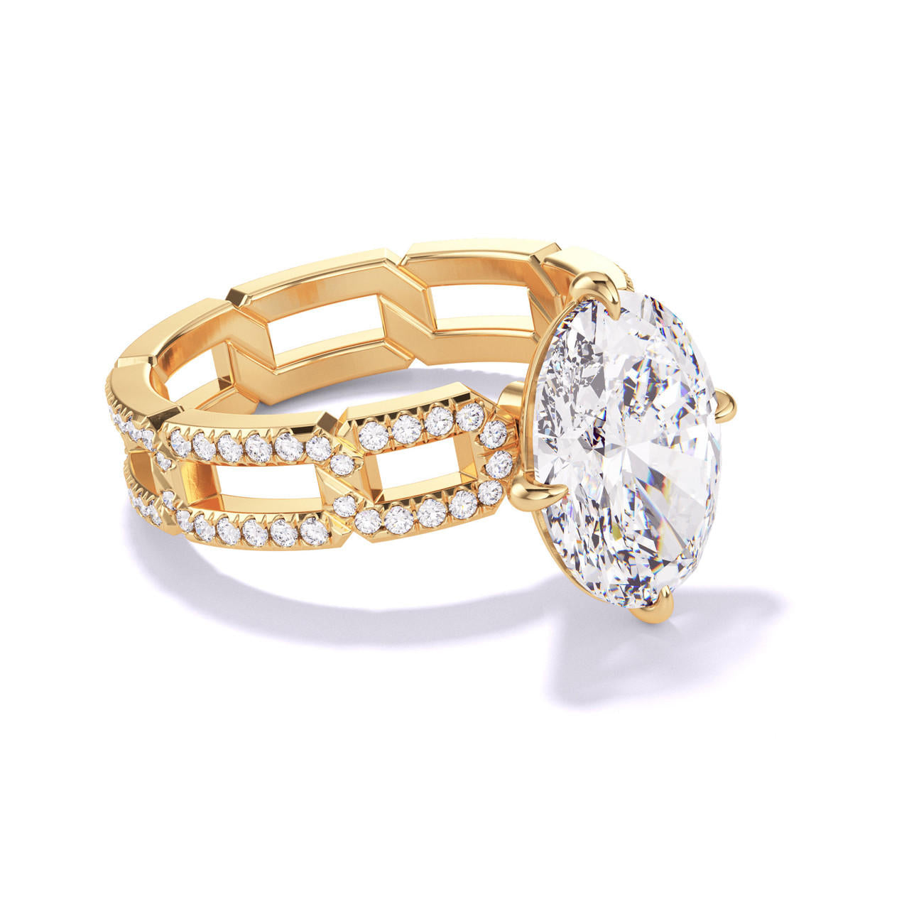 OVAL CUT DIAMOND ENGAGEMENT RING WITH A COMPASS 4 PRONG 8 PAVE LINKS SETTING IN 18K YELLOW GOLD
