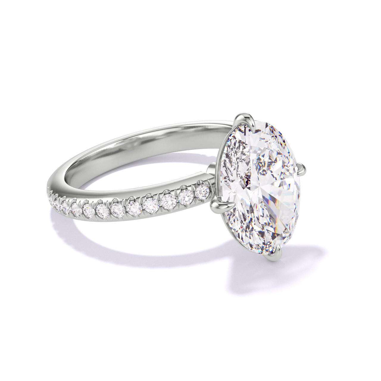 OVAL CUT DIAMOND ENGAGEMENT RING WITH A COMPASS 4 PRONG THREE PHASES PAVE SETTING IN PLATINUM