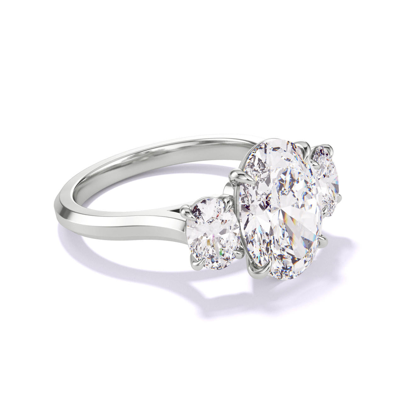 OVAL CUT DIAMOND ENGAGEMENT RING WITH A THREE STONE THREE PHASES SLIM SETTING IN PLATINUM