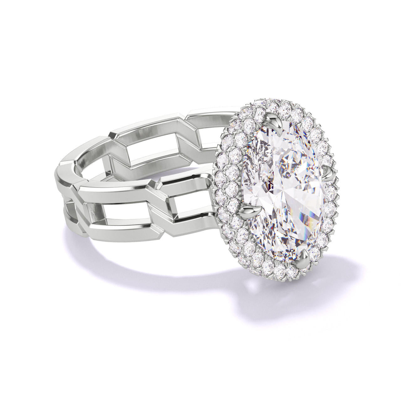 OVAL CUT DIAMOND ENGAGEMENT RING WITH A WRAPPED HALO 8 LINKS SETTING IN PLATINUM
