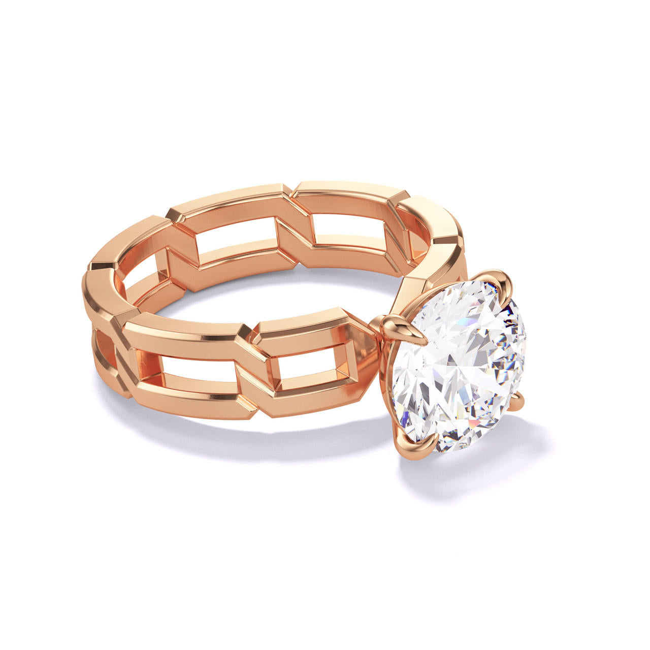 ROUND CUT DIAMOND ENGAGEMENT RING WITH A CLASSIC 4 PRONG 8 LINKS SETTING IN 18K ROSE GOLD