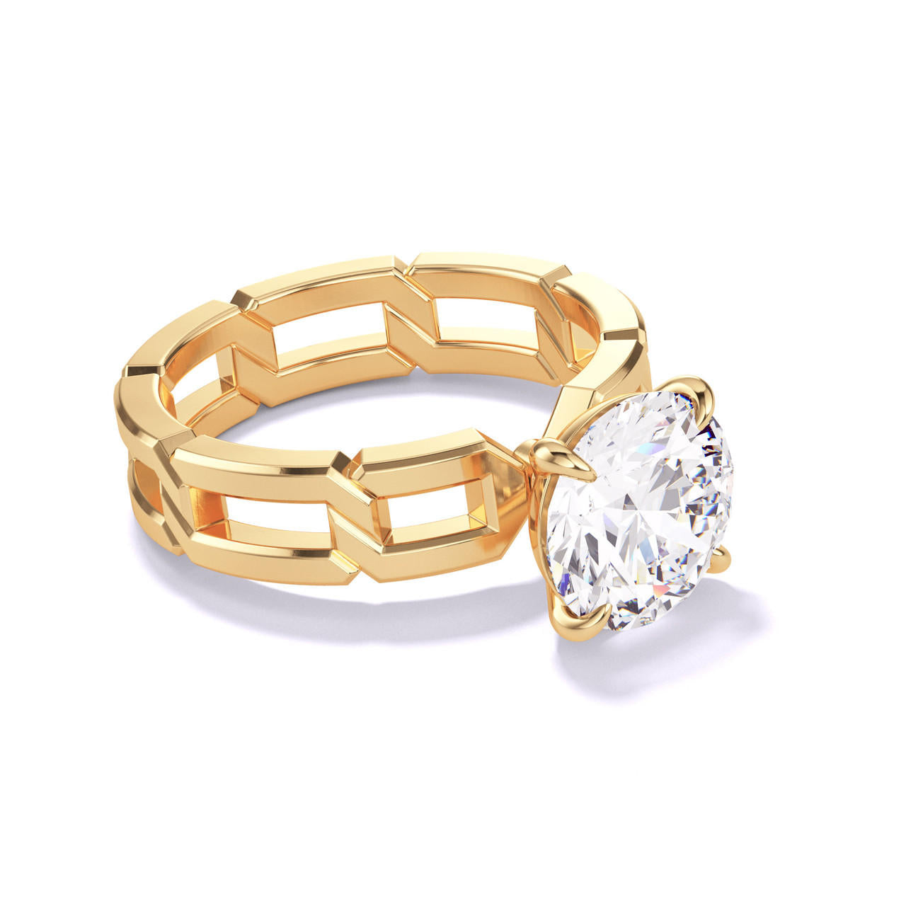 ROUND CUT DIAMOND ENGAGEMENT RING WITH A CLASSIC 4 PRONG 8 LINKS SETTING IN 18K YELLOW GOLD