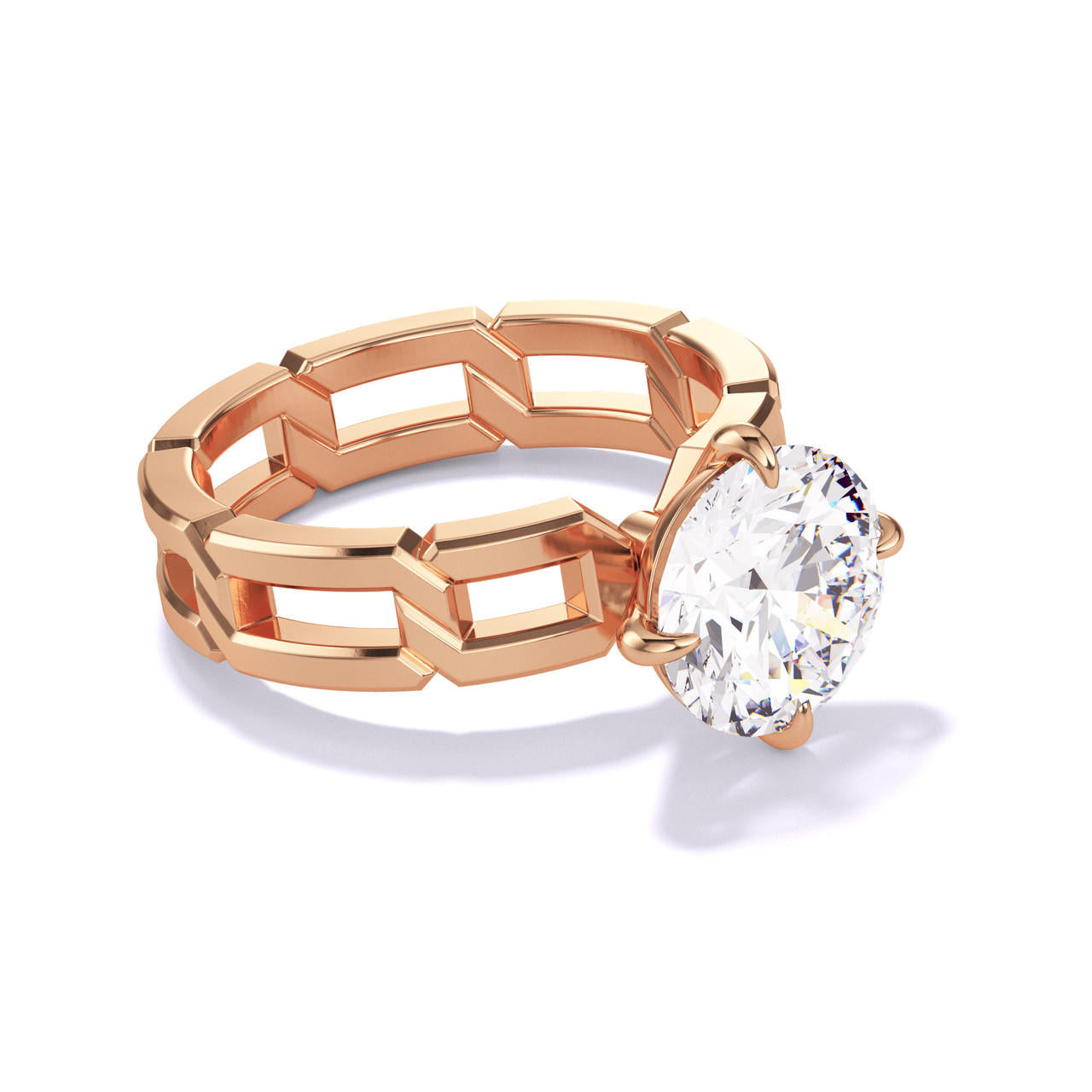 ROUND CUT DIAMOND ENGAGEMENT RING WITH A COMPASS 4 PRONG 8 LINKS SETTING IN 18K ROSE GOLD