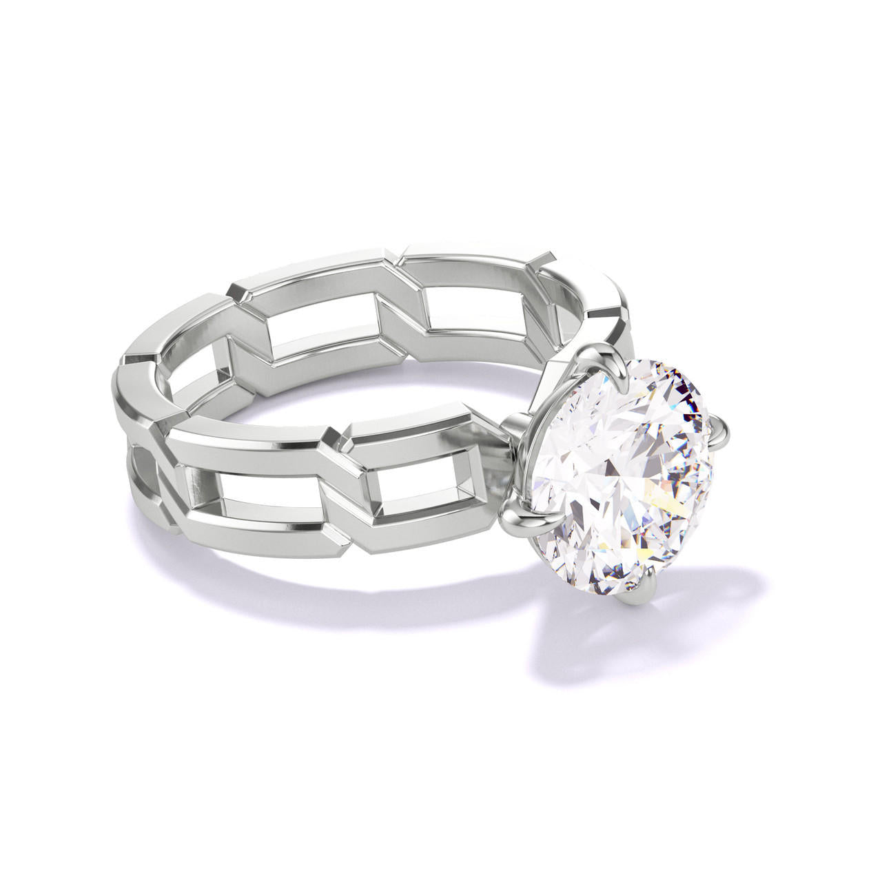ROUND CUT DIAMOND ENGAGEMENT RING WITH A COMPASS 4 PRONG 8 LINKS SETTING IN PLATINUM