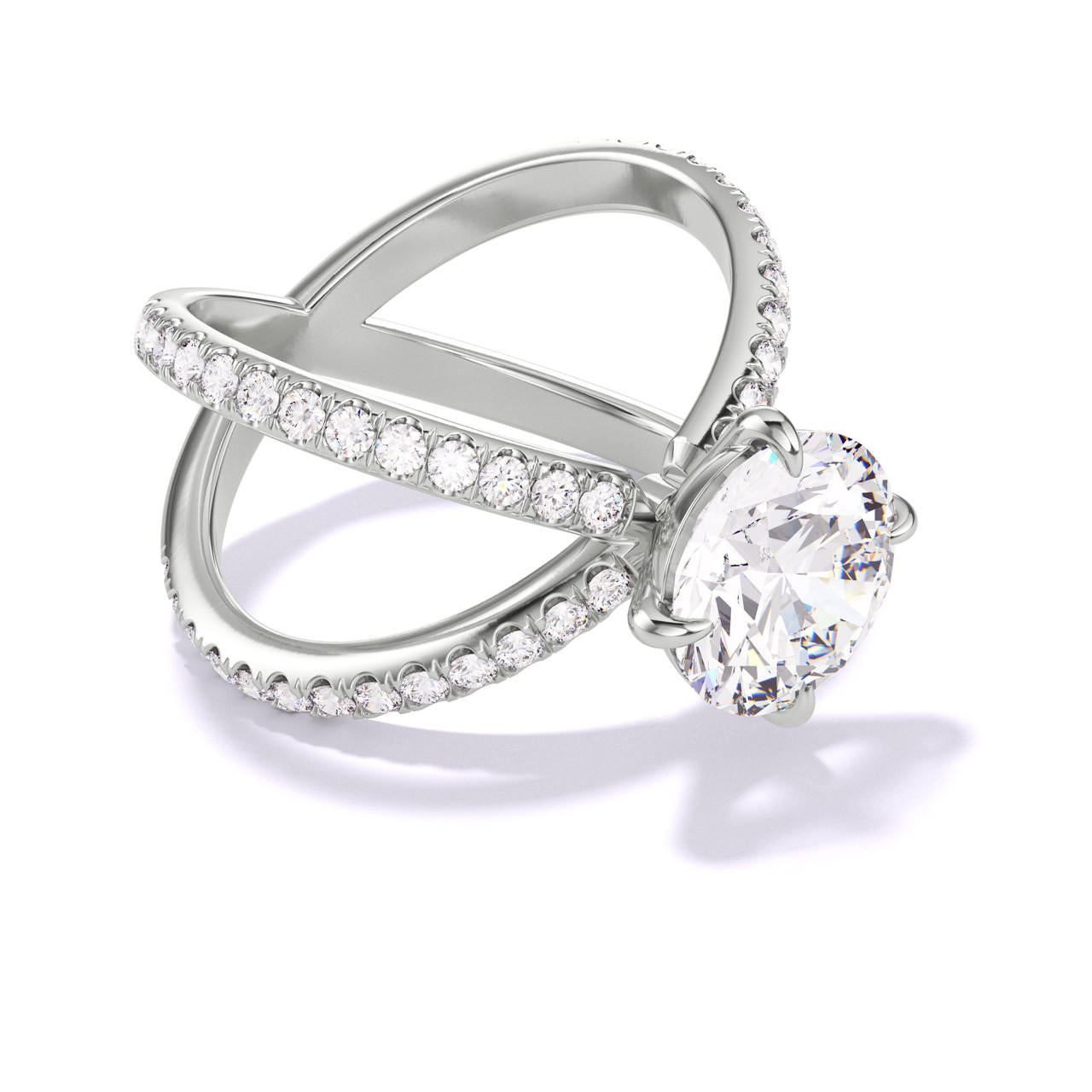 ROUND CUT DIAMOND ENGAGEMENT RING WITH A COMPASS 4 PRONG AXIS PAVE SETTING IN PLATINUM