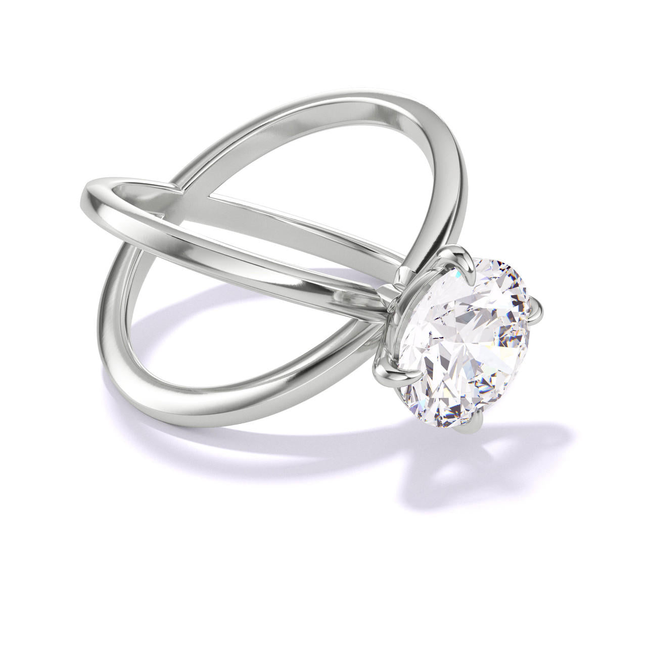 ROUND CUT DIAMOND ENGAGEMENT RING WITH A COMPASS 4 PRONG AXIS SETTING IN PLATINUM