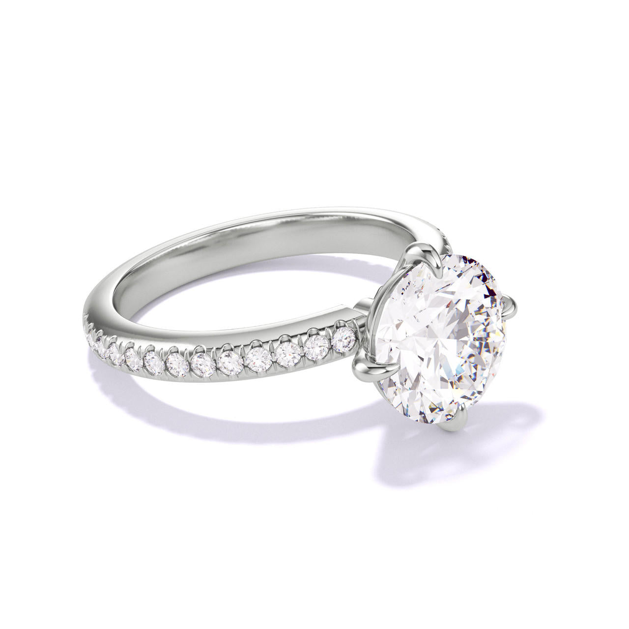 ROUND CUT DIAMOND ENGAGEMENT RING WITH A COMPASS 4 PRONG THREE PHASES PAVE SETTING IN PLATINUM