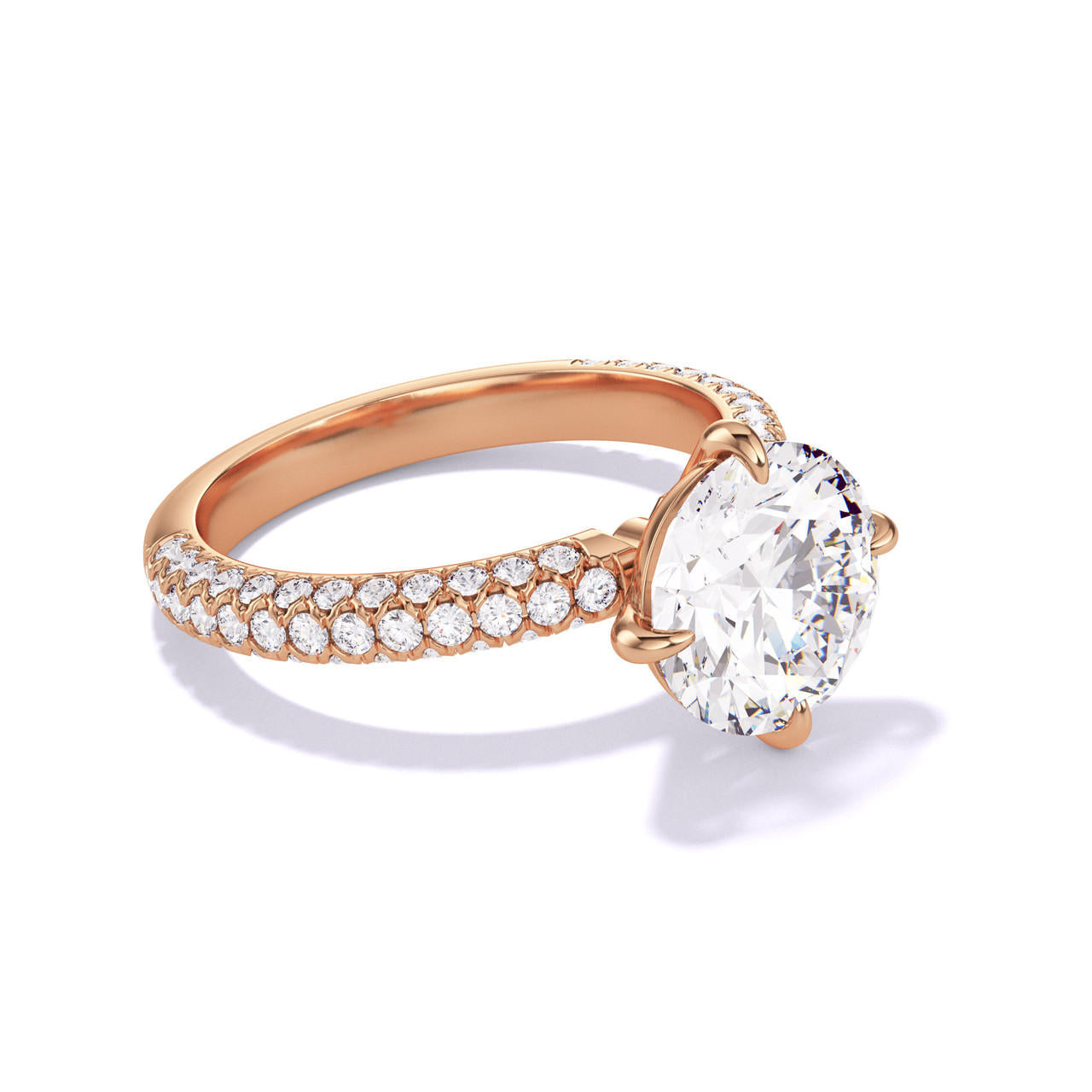 ROUND CUT DIAMOND ENGAGEMENT RING WITH A COMPASS 4 PRONG THREE PHASES TRIPLE PAVE SETTING IN 18K ROSE GOLD