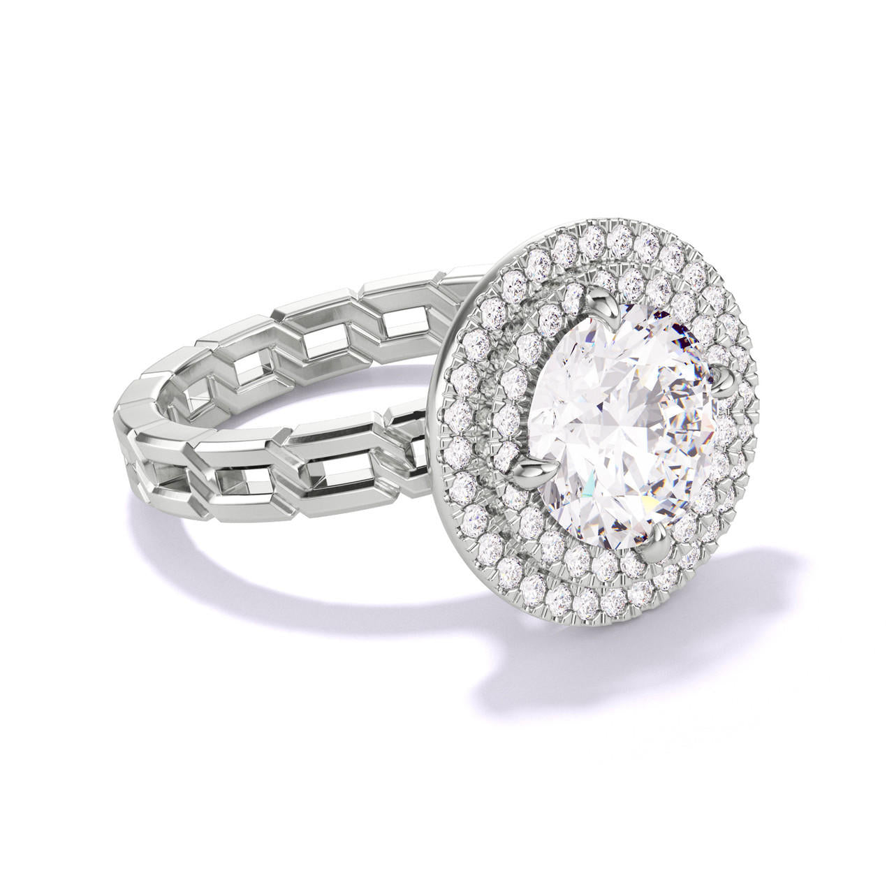 ROUND CUT DIAMOND ENGAGEMENT RING WITH A DOUBLE HALO 16 LINKS SETTING IN PLATINUM
