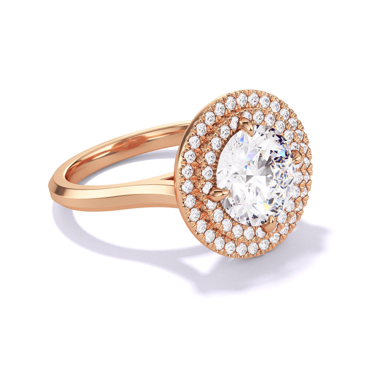 ROUND CUT DIAMOND ENGAGEMENT RING WITH A DOUBLE HALO THREE PHASES SLIM SETTING IN 18K ROSE GOLD