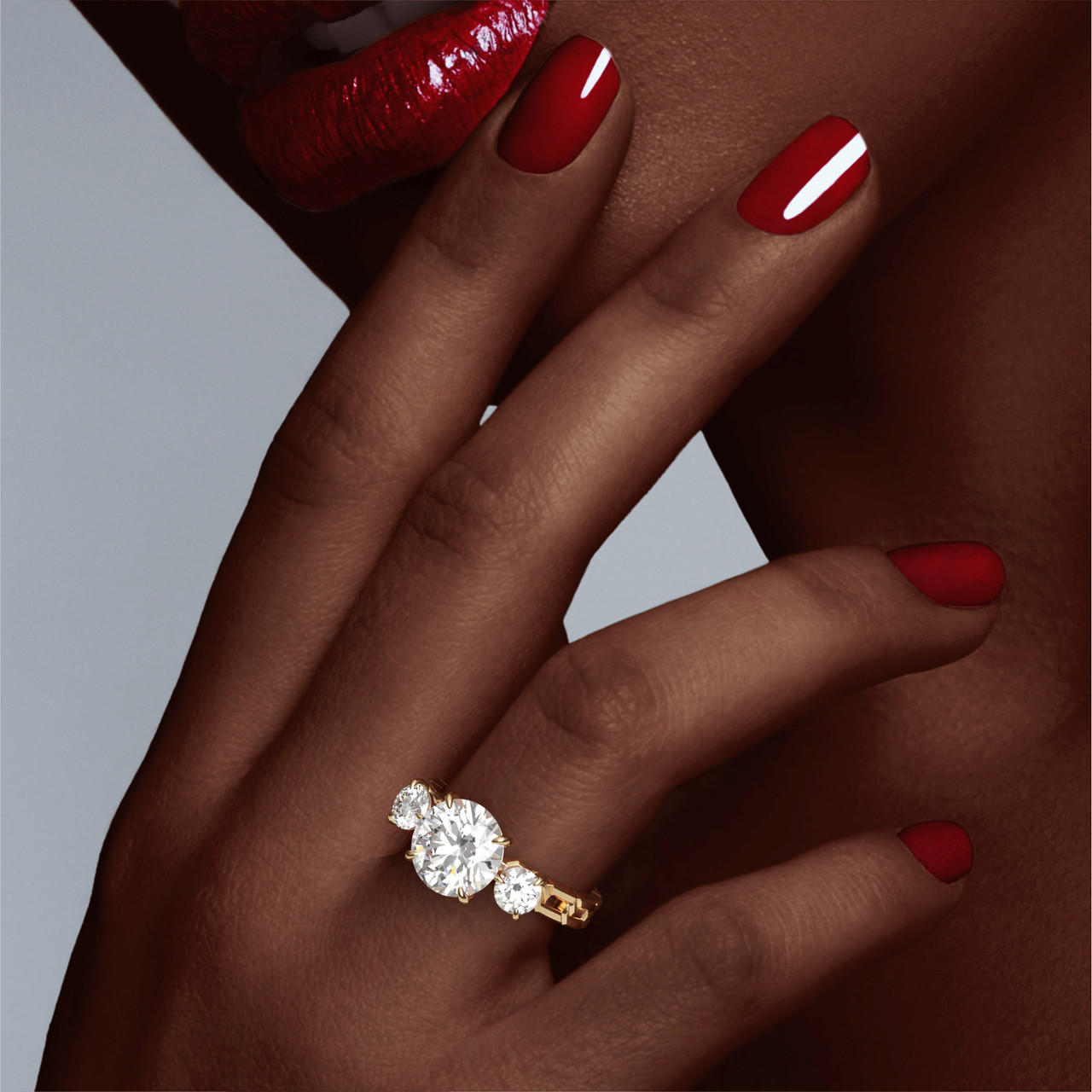 All Lindsey Scoggins Studio engagement rings are made exclusively for you in New York City’s Diamond District. Your round diamond three stone engagement ring on a polished 16 link band will be made to precisely fit your diamond and finger. The carat weight of this setting is approximately 0.5 carats for a size 6 and varies slightly by ring size.