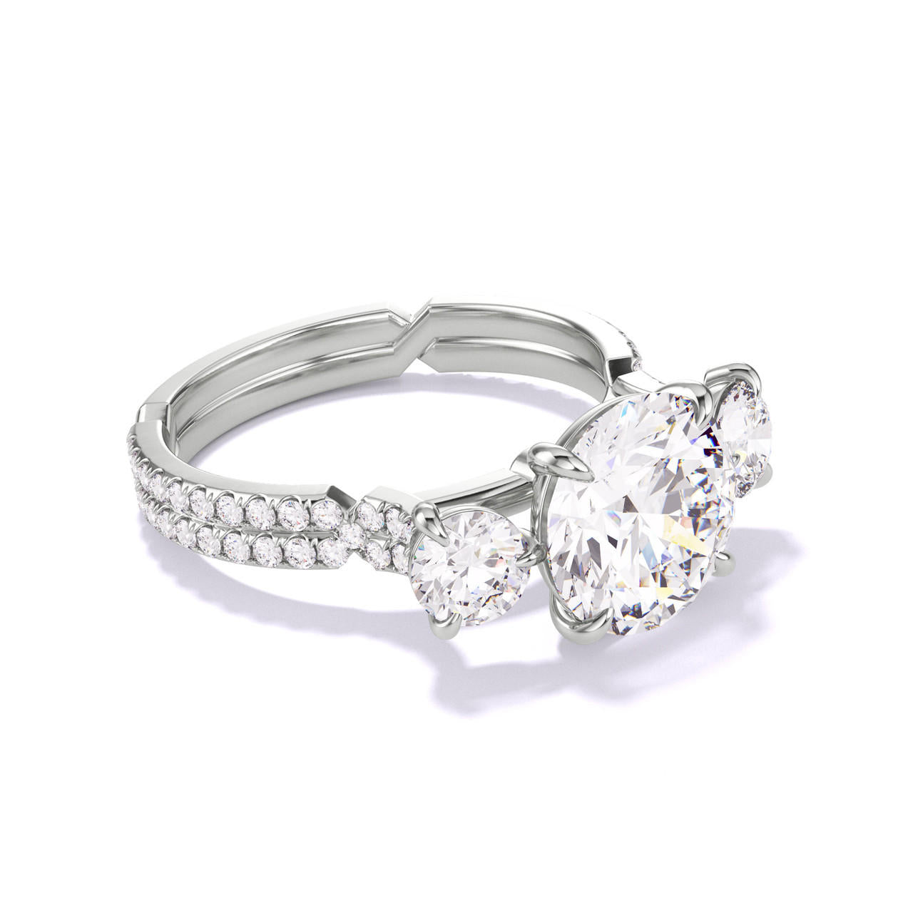 ROUND CUT DIAMOND ENGAGEMENT RING WITH A THREE STONE CHANCE PAVE SETTING IN PLATINUM