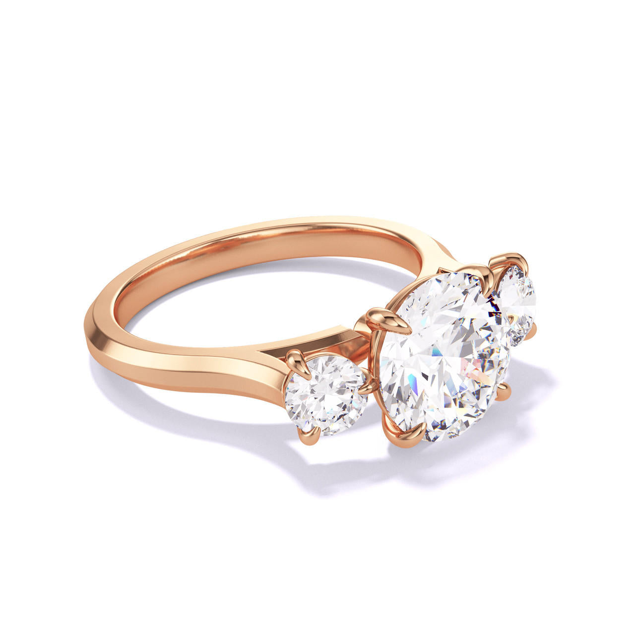 ROUND CUT DIAMOND ENGAGEMENT RING WITH A THREE STONE THREE PHASES SLIM SETTING IN 18K ROSE GOLD