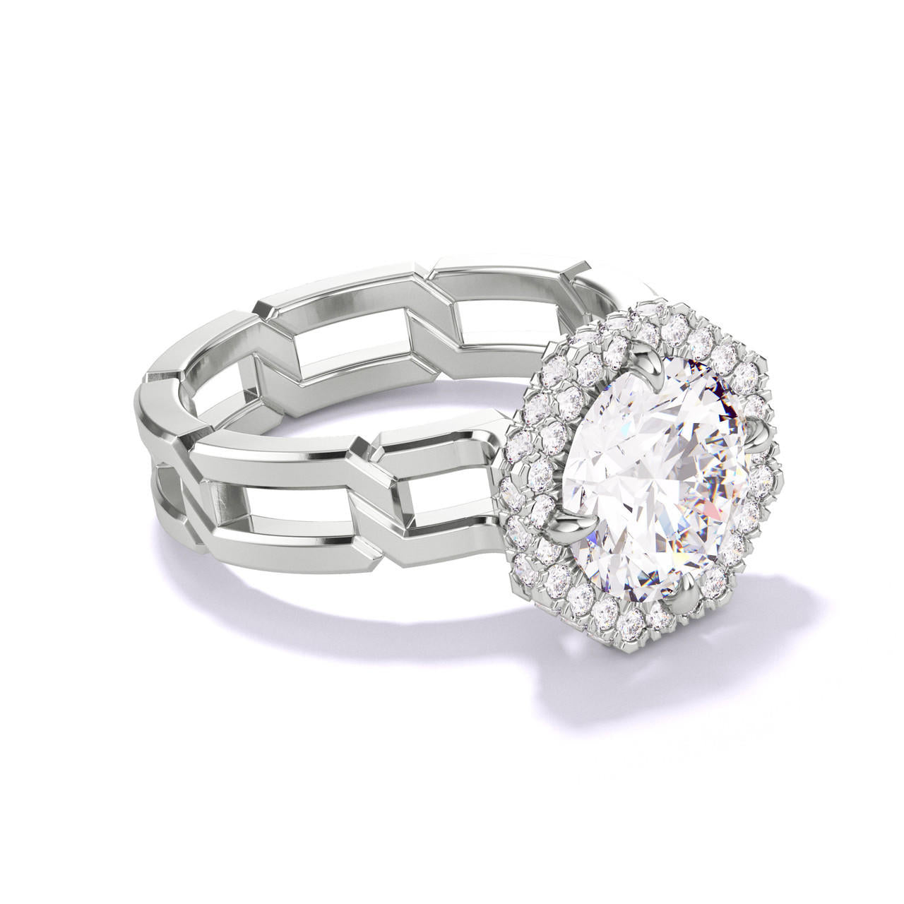 ROUND CUT DIAMOND ENGAGEMENT RING WITH AN OCTAGON HALO 8 LINKS SETTING IN PLATINUM